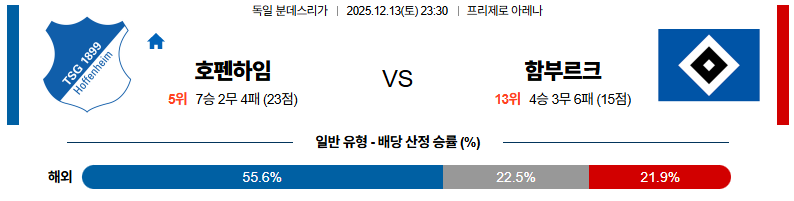호펜하임 대 함부르크 분데스리가 12월13일 맞대결 생중계, 스포츠중계, 스포츠분석