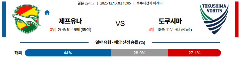 제프유나이티드 대 도쿠시마 J리그2 12월13일 맞대결 생중계, 스포츠중계, 스포츠분석