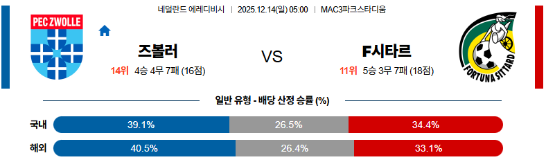 즈볼레 대 시타르트 에레디비지 12월14일 맞대결 생중계, 스포츠중계, 스포츠분석