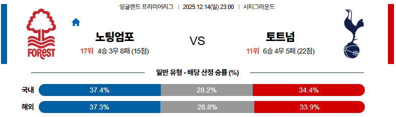 노팅엄 대 토트넘 프리미어리그 12월14일 맞대결 생중계, 스포츠중계, 스포츠분석