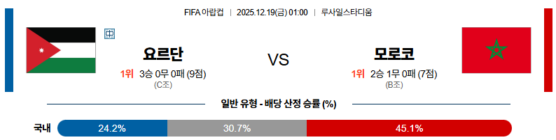 12월19일 요르단:모로코 FIFA아랍컵 분석 및 예측 스포츠중계:스포츠무료중계
