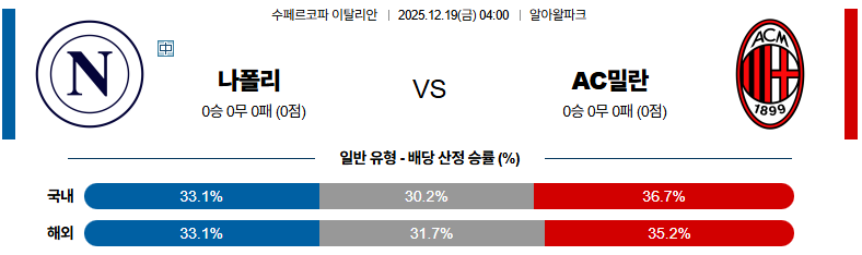 12월19일 나폴리:AC밀란 코파이탈리아 분석 및 예측 스포츠중계:스포츠무료중계