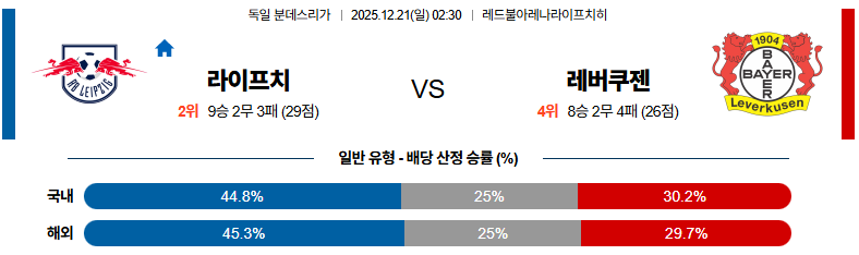 12월21일 라이프치히:레버쿠젠 분데스리가 분석 및 예측 스포츠중계:스포츠무료중계