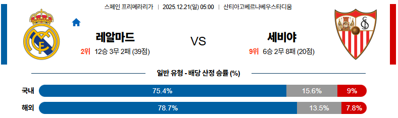 12월21일 레알마드리드:세비야 라리가 분석 및 예측 스포츠중계:스포츠무료중계
