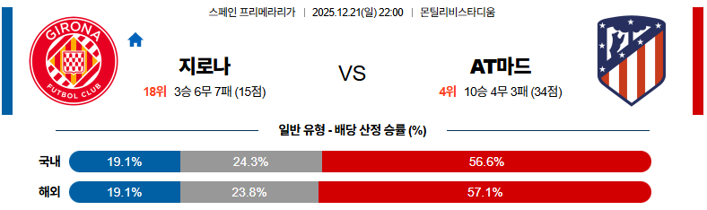 12월21일 지로나:AT마드리드 라리가 분석 및 예측 스포츠중계:스포츠무료중계