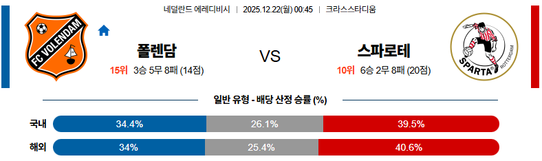 12월22일 폴랜담:스파르타 에레디비지 분석 및 예측 스포츠중계:스포츠무료중계