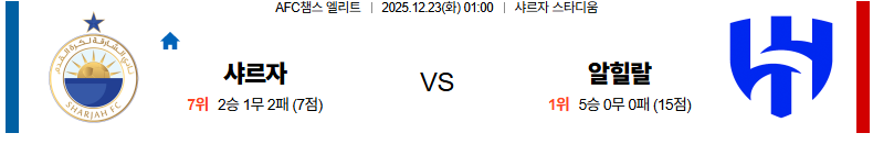 12월23일 알샤르자:알힐랄 AFC챔피언스리그 분석 및 예측 스포츠중계:스포츠무료중계
