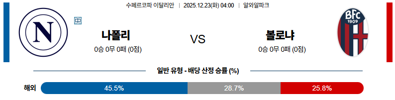 12월23일 나폴리:볼로냐 수페르코파이탈리아나 분석 및 예측 스포츠중계:스포츠무료중계