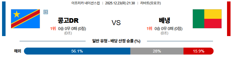12월23일 콩고민주공화국:베냉 네이션스컵 분석 및 예측 스포츠중계:스포츠무료중계