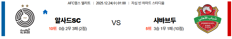 12월24일 알사드:샤바브두 AFC챔피언스리그 분석 및 예측 스포츠중계:스포츠무료중계