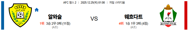 12월25일 알와슬:알웨다트 AFC챔피언스리그2 분석 및 예측 스포츠중계:스포츠무료중계