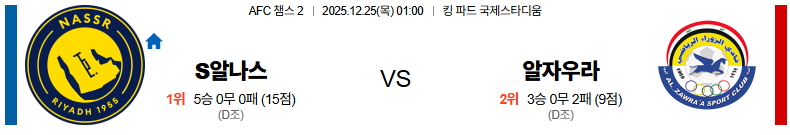 12월25일 알나스르:알자우라 AFC챔피언스리그2 분석 및 예측 스포츠중계:스포츠무료중계