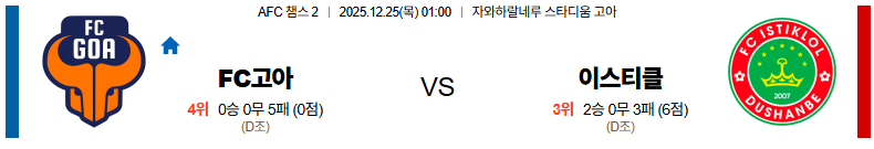 12월25일 FC고아:이스티크롤 AFC챔피언스리그2 분석 및 예측 스포츠중계:스포츠무료중계