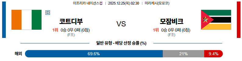 12월25일 코트디부아르:모잠비크 네이션스컵 분석 및 예측 스포츠중계:스포츠무료중계