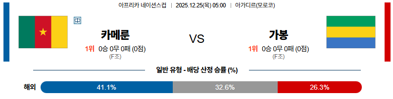 12월25일 카메룬:가봉 네이션스컵 분석 및 예측 스포츠중계:스포츠무료중계