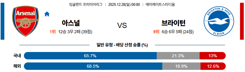 12월28일 아스널:브라이턴 프리미어리그 분석 및 예측 스포츠중계:스포츠무료중계