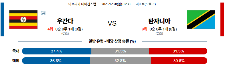 12월28일 우간다:탄자니아 네이션스컵 분석 및 예측 스포츠중계:스포츠무료중계