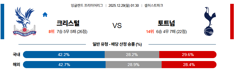 12월29일 크리스탈팰리스:토트넘 프리미어리그 분석 및 예측 스포츠중계:스포츠무료중계