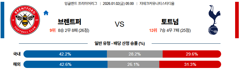 01월02일 브렌트퍼드:토트넘 프리미어리그 분석 및 예측 스포츠중계:스포츠무료중계