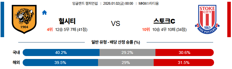 01월02일 헐시티:스토크시티 잉글랜드챔피언쉽 분석 및 예측 스포츠중계:스포츠무료중계