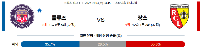01월03일 툴루즈:랑스 리그앙 분석 및 예측 스포츠중계:스포츠무료중계