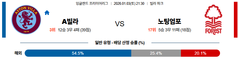 01월03일 아스톤빌라:노팅엄 프리미어리그 분석 및 예측 스포츠중계:스포츠무료중계
