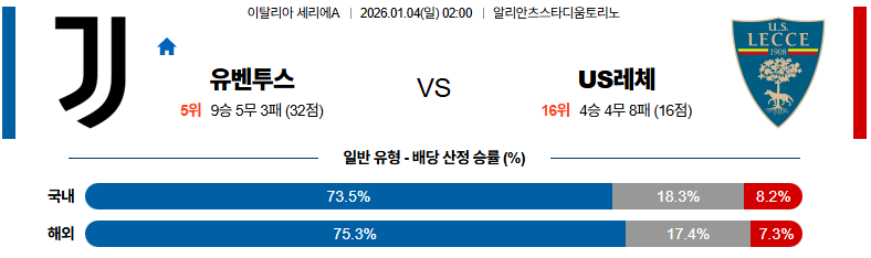 01월04일 유벤투스:US레체 세리에A 분석 및 예측 스포츠중계:스포츠무료중계