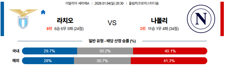 01월04일 라치오:나폴리 세리에A 분석 및 예측 스포츠중계:스포츠무료중계