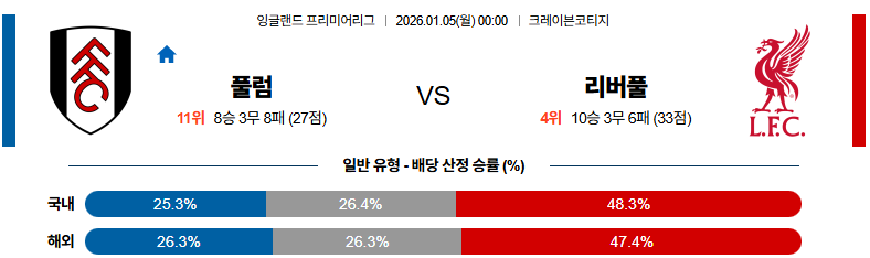 01월05일 풀럼:리버풀 프리미어리그 분석 및 예측 스포츠중계:스포츠무료중계