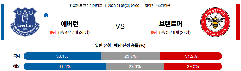 01월05일 에버턴:브렌트퍼드 프리미어리그 분석 및 예측 스포츠중계:스포츠무료중계