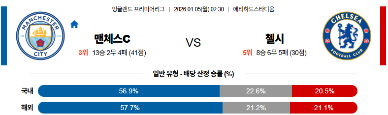 01월05일 맨시티:첼시 프리미어리그 분석 및 예측 스포츠중계:스포츠무료중계