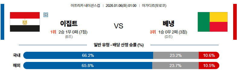 01월06일 이집트:베냉 CON네이션스리그 분석 및 예측 스포츠중계:스포츠무료중계