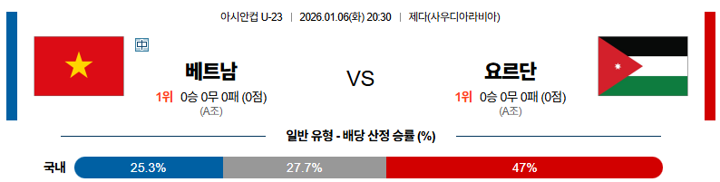01월06일 베트남:요르단 U23아시안컵 분석 및 예측 스포츠중계:스포츠무료중계