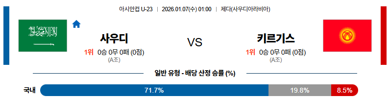 01월07일 사우디아라비아:키르기스스탄 U23아시안컵 분석 및 예측 스포츠중계:스포츠무료중계