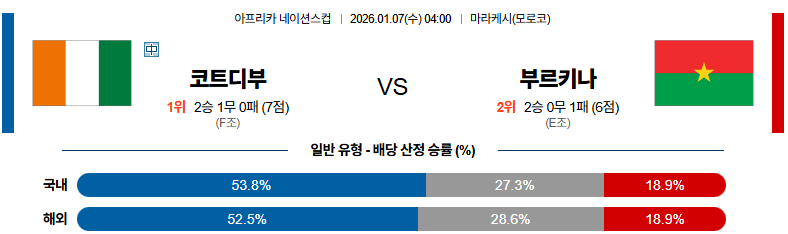 01월07일 코트디부아르:부르키나파소 네이션스컵 분석 및 예측 스포츠중계:스포츠무료중계