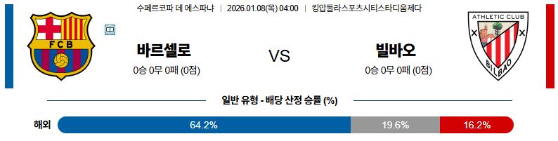 01월08일 바르셀로나:빌바오 수페르코파데에스파냐 분석 및 예측 스포츠중계:스포츠무료중계