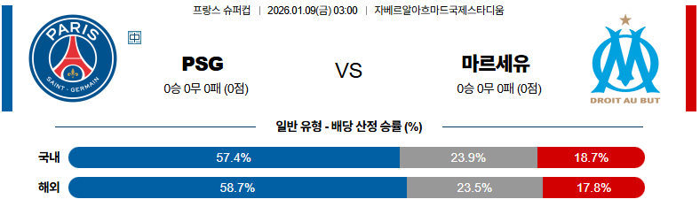 01월09일 파리생제르망:마르세유 리그앙 분석 및 예측 스포츠중계:스포츠무료중계