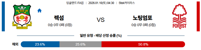 01월10일 렉섬:노팅엄 잉글랜드FA컵 분석 및 예측 스포츠중계:스포츠무료중계