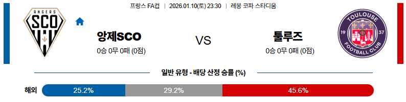 01월10일 앙제:툴루즈 프랑스FA컵 분석 및 예측 스포츠중계:스포츠무료중계