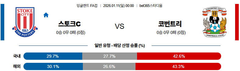01월11일 스토크시티:코번트리 잉글랜드FA컵 분석 및 예측 스포츠중계:스포츠무료중계