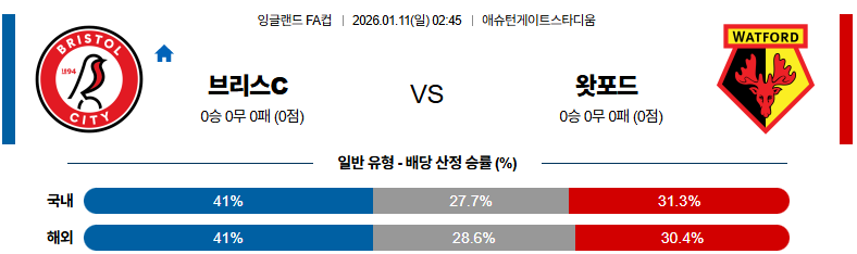 01월11일 브리스톨:왓포드 잉글랜드FA컵 분석 및 예측 스포츠중계:스포츠무료중계