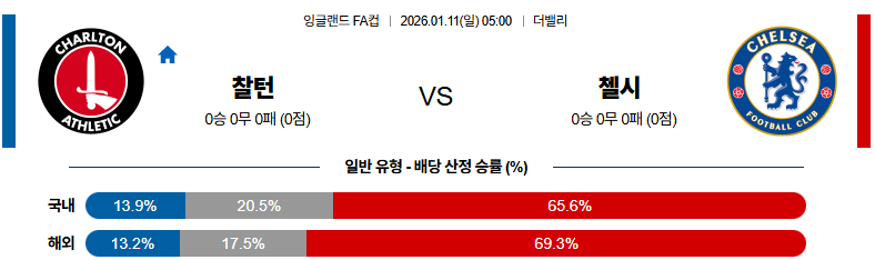 01월11일 찰튼:첼시 잉글랜드FA컵 분석 및 예측 스포츠중계:스포츠무료중계