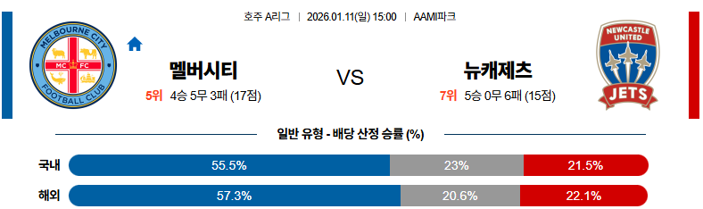 01월11일 멜버른시티:뉴캐슬제츠 호주A리그 분석 및 예측 스포츠중계:스포츠무료중계