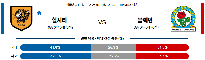 01월11일 헐시티:블랙번 잉글랜드FA컵 분석 및 예측 스포츠중계:스포츠무료중계