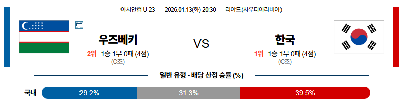 01월13일 우즈베키스탄:대한민국 U23아시안컵 분석 및 예측 스포츠중계:스포츠무료중계