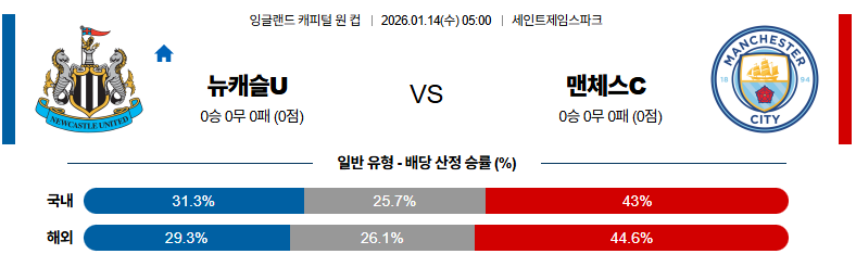 01월14일 뉴캐슬:맨시티 잉글랜드캐피털원컵 분석 및 예측 스포츠중계:스포츠무료중계