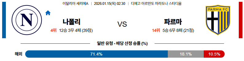 01월15일 나폴리:파르마 세리에A 분석 및 예측 스포츠중계:스포츠무료중계