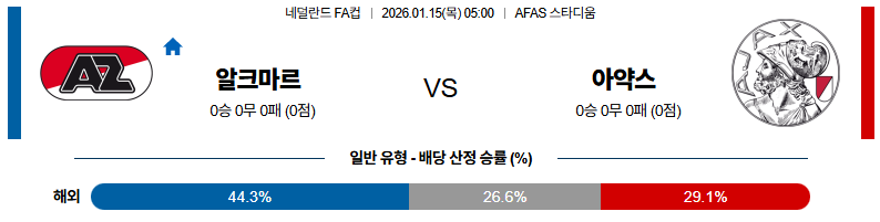 01월15일 알크마르:아약스 네덜란드FA컵 분석 및 예측 스포츠중계:스포츠무료중계