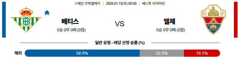 01월15일 베티스:엘체 스페인코파델레이 분석 및 예측 스포츠중계:스포츠무료중계