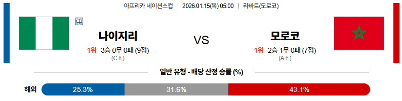 01월15일 나이지리아:모로코 CON네이션스리그 분석 및 예측 스포츠중계:스포츠무료중계
